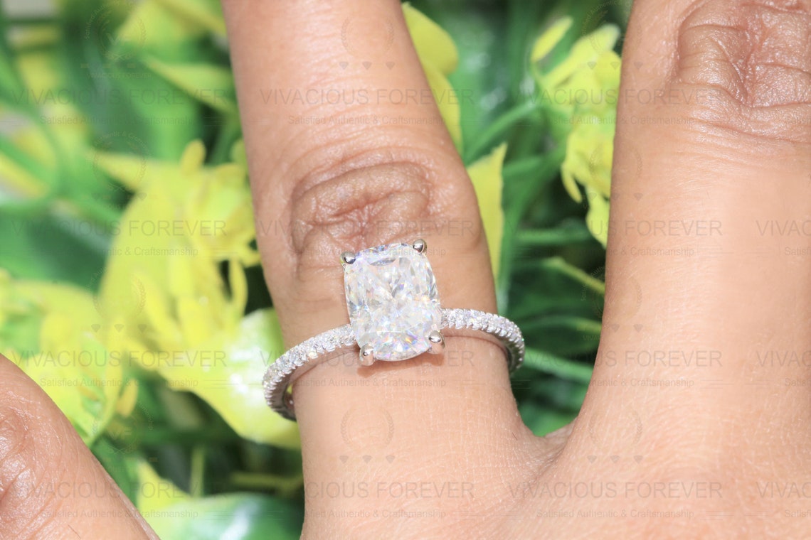 Title -2.78CT Hidden Halo Elongated Cushion Moissanite Ring | Colorless Moissanite Ring | Accented Real Certified Diamond Ring | Engagement Ring | Side Stone 0.51Ct Certified Natural Diamond.