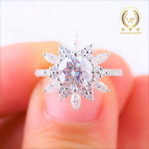 2ct Flower Style Round Froever One Colorless Moissanite Engagement Ring With 1.2ct Natural Diamond Side,14K Gold Wedding Ring, Promise Ring
