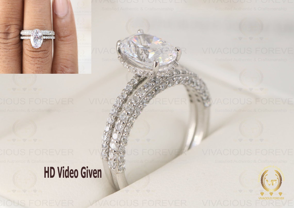<> 3.98CTW Oval Wedding Bridal Ring, Oval Moissanite Engagement Ring Set, – Vivacious Forever