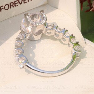 <> 3.21Ct Round Cut Colorless Moissanite Engagement Ring with 2.67Ct Acce – Vivacious Forever