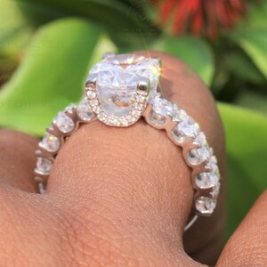 • PCS: 1 Piece of Cushion Cut Moissanite in center and side have also moissanite