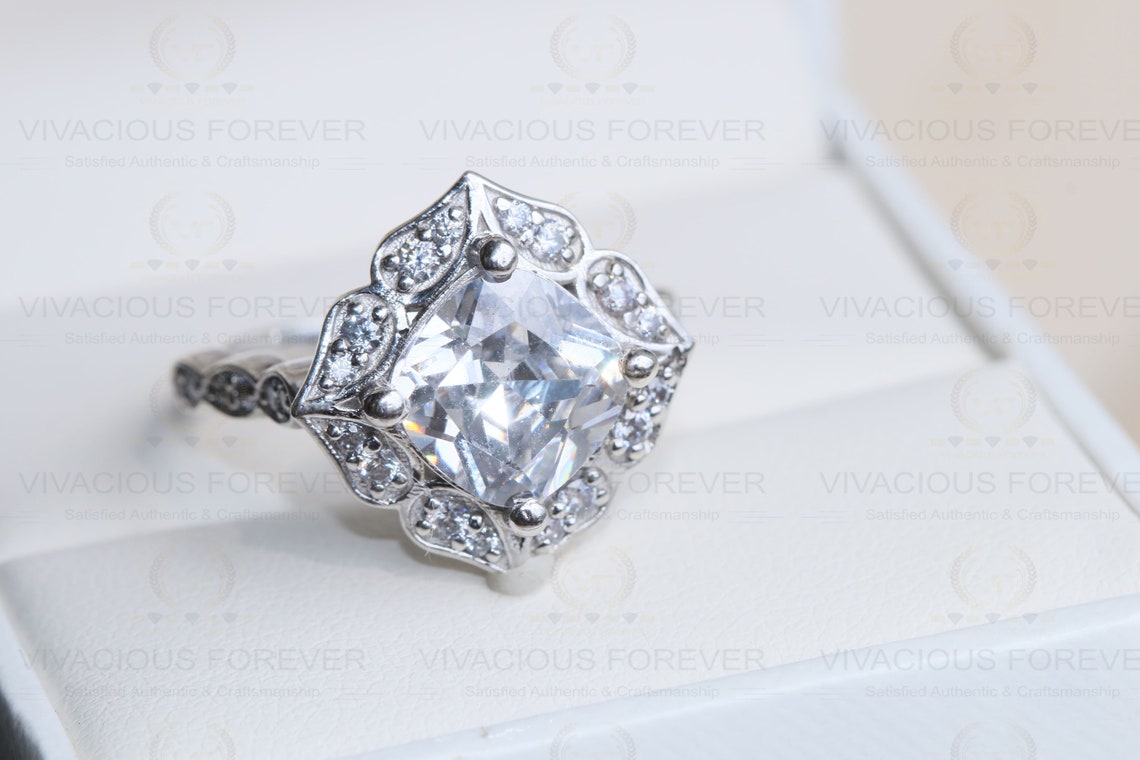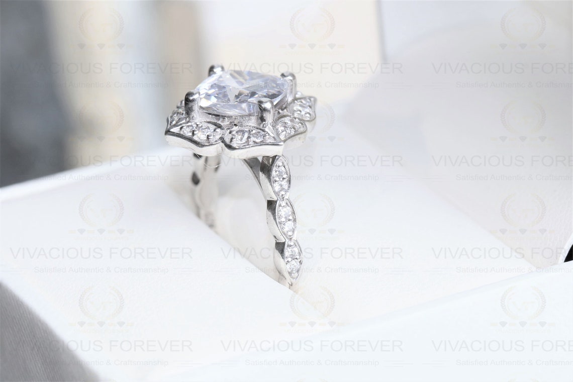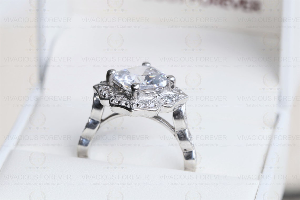 <> Colorless Moissanite 3.15CT Cushion Halo Solid Gold Engagement Ring, A – Vivacious Forever
