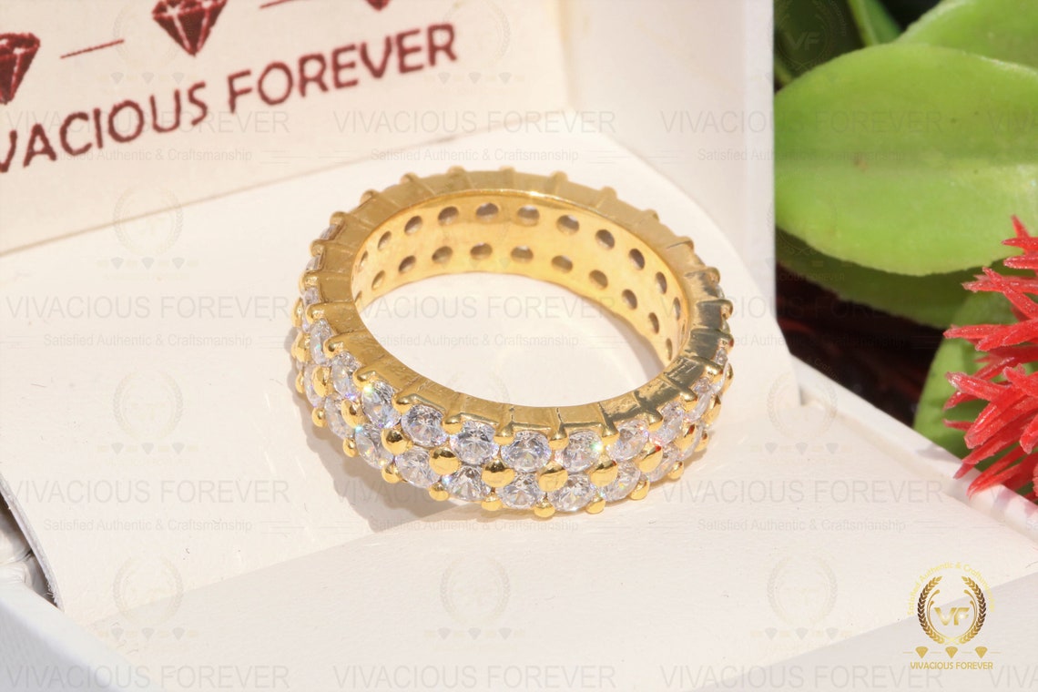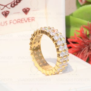 Title - Colorless Round Cut 4.56CTW Full Eternity Band, Two Row Moissanite Band, Double Row Band, Wedding Band, Anniversary Band For Gift For Her